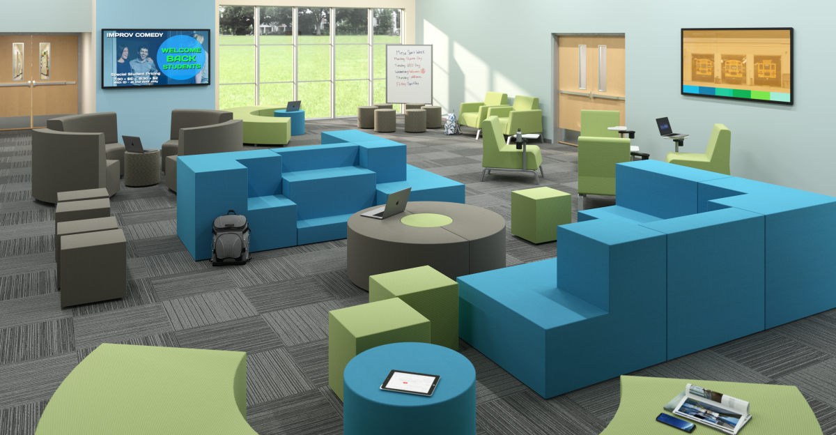 For instance, K-12 leaders can inspire school spirit with the colors they choose for furnishings. Using custom graphics, murals, and other artwork can also turn an otherwise nondescript space into a source of great community pride.