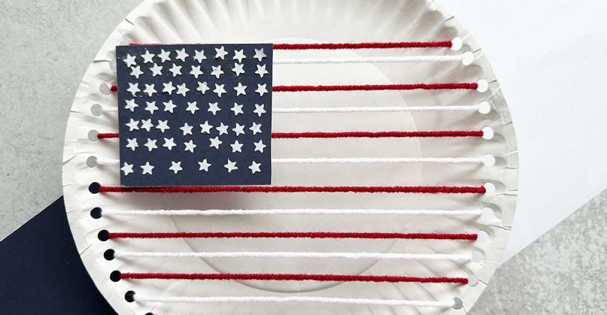 This paper plate flag craft activity is a fun way to celebrate Flag Day with your students. Feeding the yarn through the punched holes in the plate is a great way to strengthen hand-eye coordination and fine motor skills. Bonus – it isn’t too messy since no paint is used!